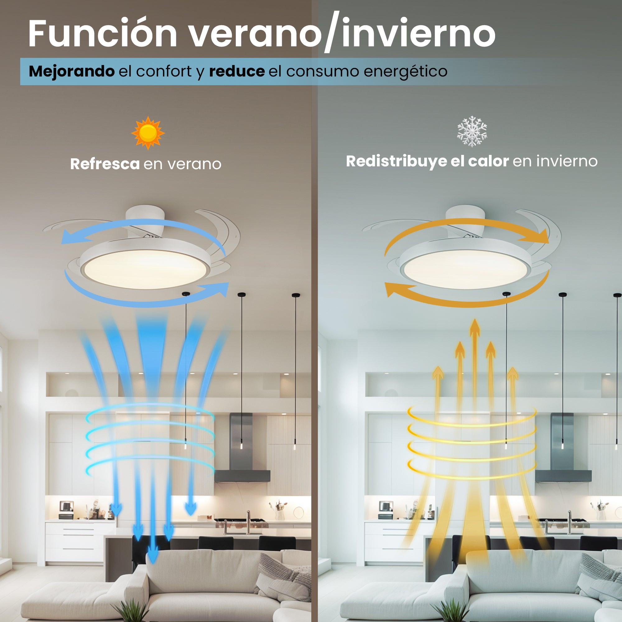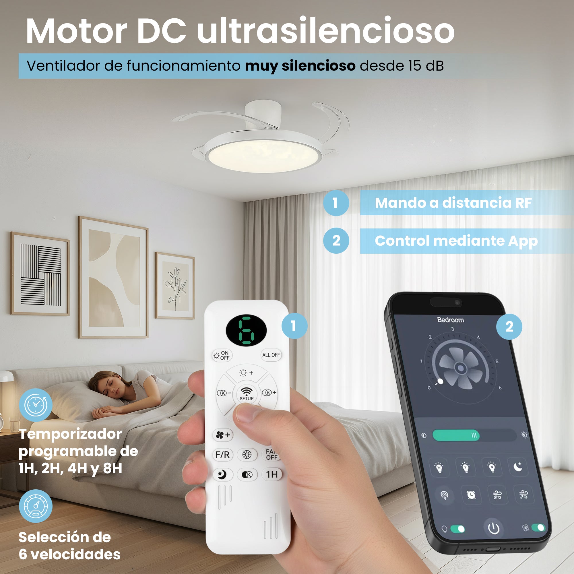 Disfruta de un ambiente perfecto todo el año con este ventilador de techo silencioso, equipado con motor DC, 6 velocidades... Leer más...