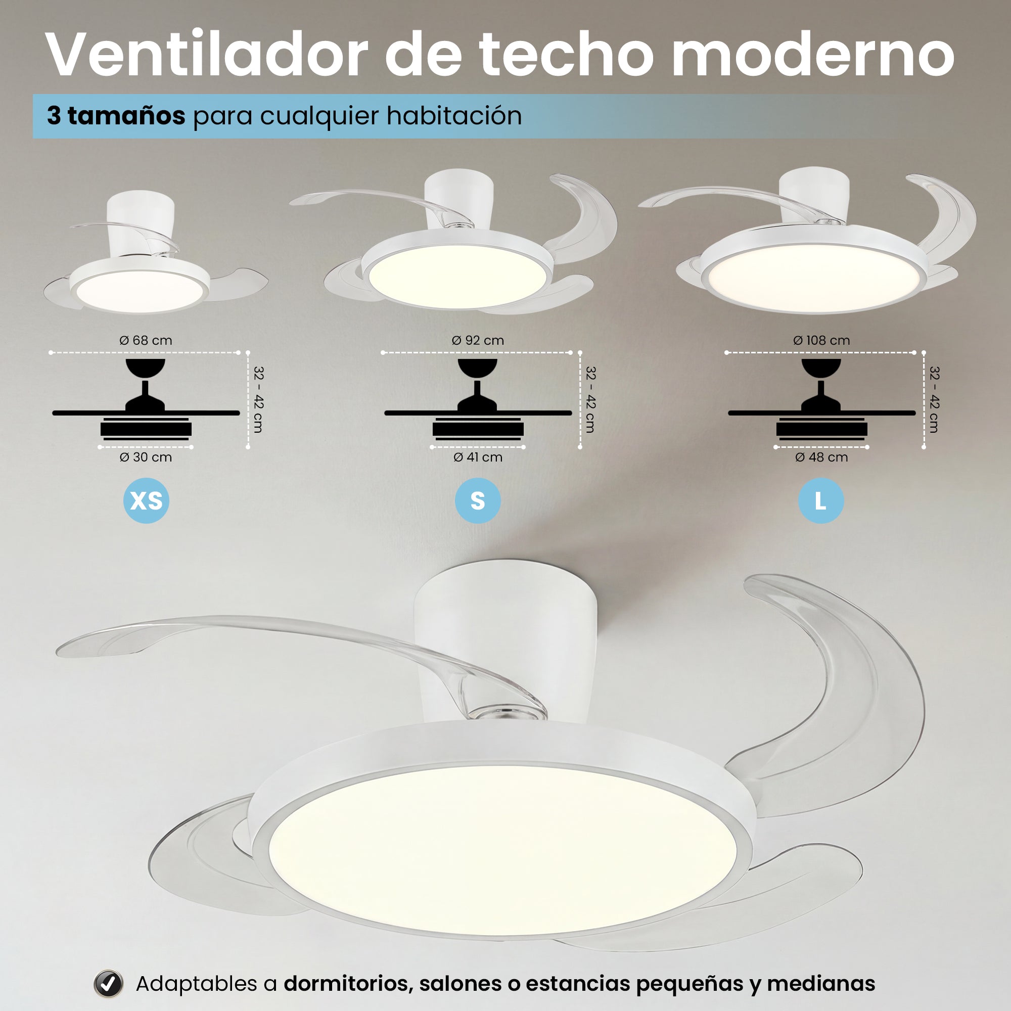 Ventilador de Techo con Luz Led Moderno - Nuevo Modelo