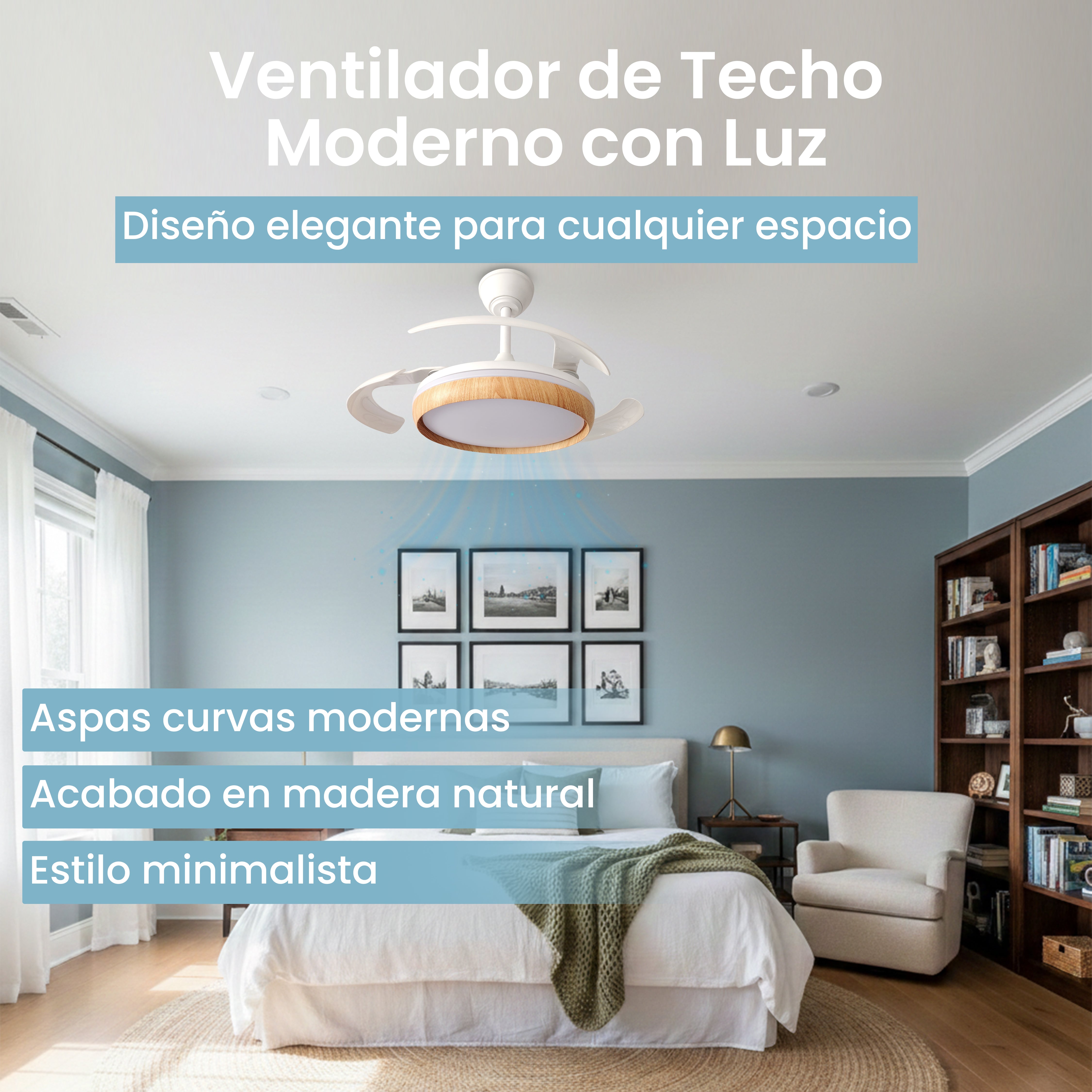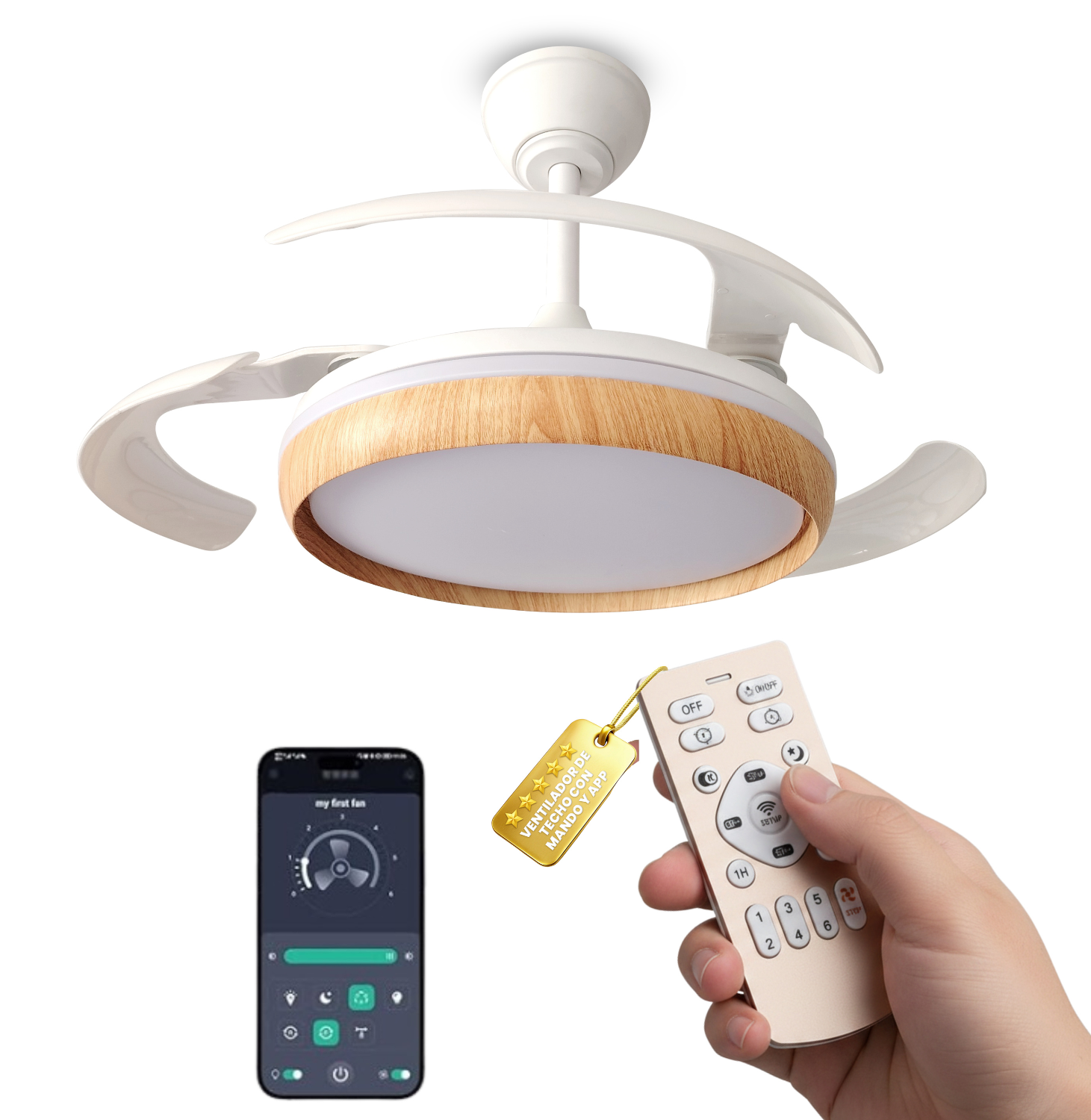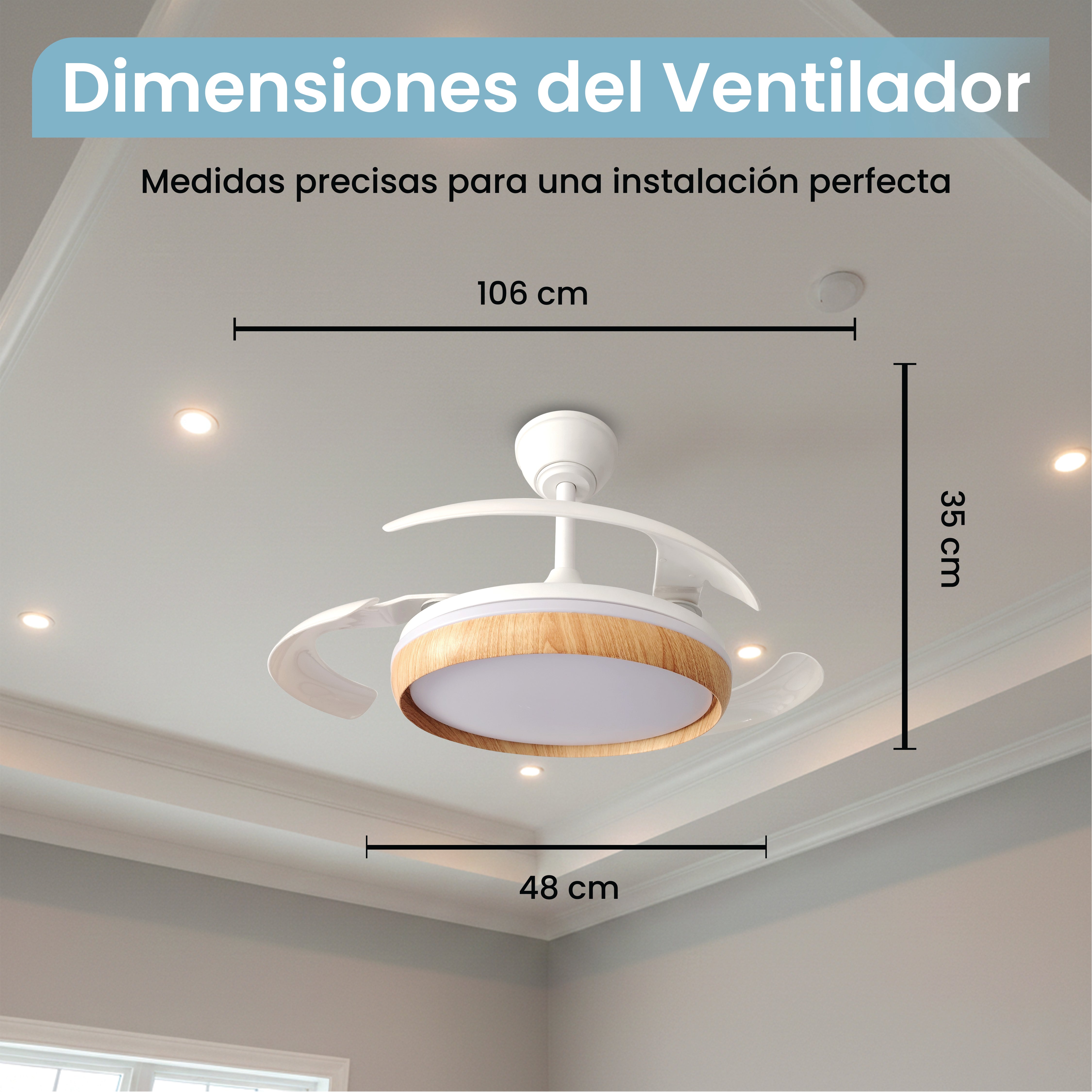 Ventilador de Techo Retráctil 106 cm Abierto | Color madera